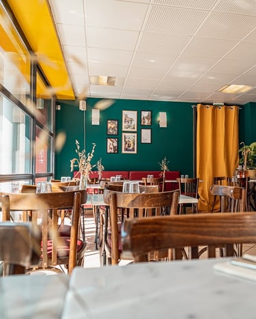Des petites tables rondes comme dans nos cuisines, une ambiance chaleureuse et un accueil très sympa.